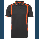 moisture removal microknit, snag resistant easy care fabric. Self fabric binding finishes neck and armholes, contrast side panels with back neck reflective tab for ear phones.